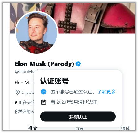 顺带一提,在推特上连马斯克自己都有个后面带括号(parody)的模仿账号。