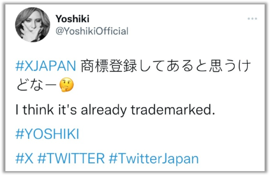 人Yoshiki说,我认为XJAPAN早就被我们注册成了商标了。