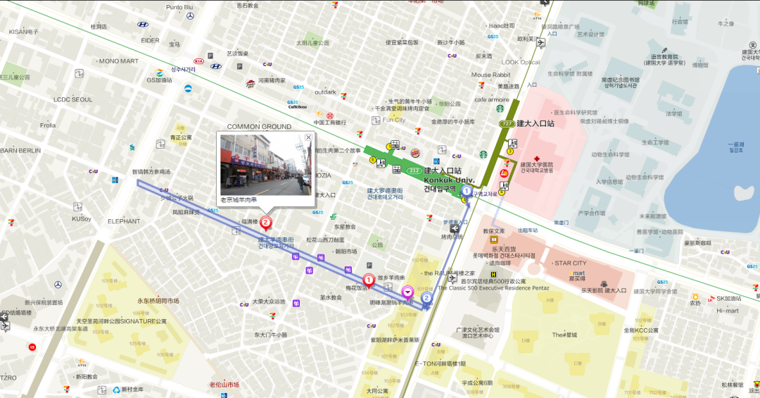 “想吃家乡菜的时候打听到一个地方,叫做建大地铁2号线的出口”王嘉尔歌词里写的就是首尔地铁2号线建国大学站。建国大学的校园也是很多著名电影电视剧的取景地,像《鬼怪》里金高银和初恋丁海寅相遇的地方就是在建大。