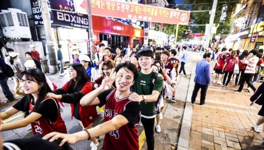 曾经在延世语学院就读的我,有幸参加了一场“延高战”,当时比到最后是延世大学赢了,因为延世坐落在首尔的新村附近,晚上的新村一片红海,当晚的赢家延世学生们可以凭着延世学生证到新村的任意酒吧喝酒都是免费的!