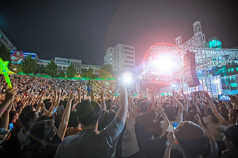 留学时,我看了一场母校庆熙大的校庆,当时脸红思春期、黑裙子、winner都来了。类似这样的大型活动最后都会变成一个大型蹦迪现场!