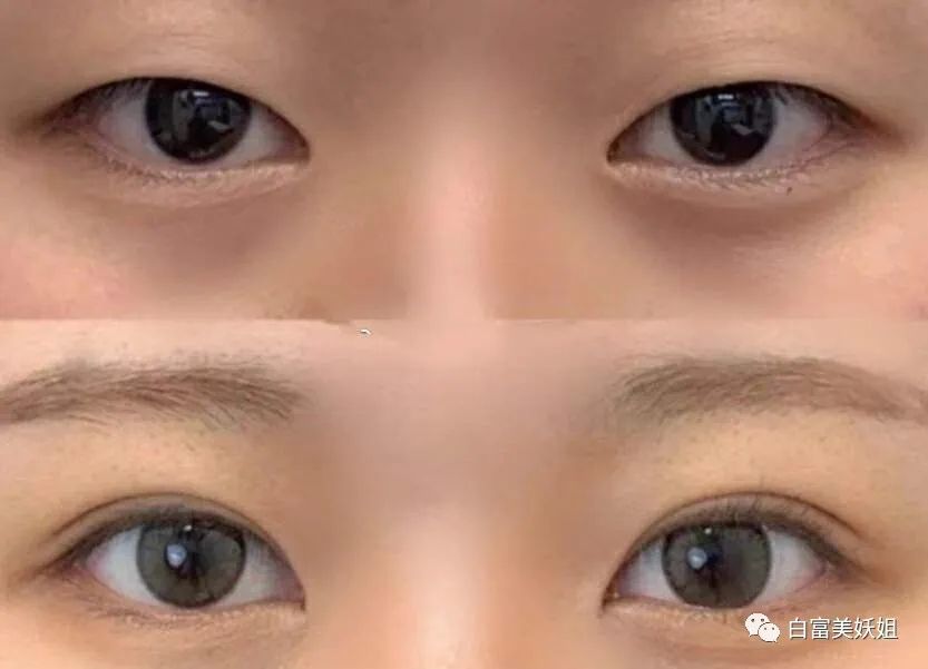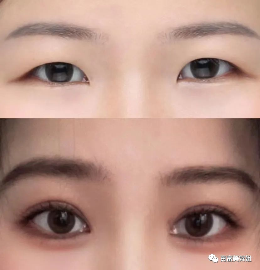 它还可以在一定程度上调整眼睛形状。下图这位姐妹切了个双眼皮,就从逗号眼变成小鹿眼了。