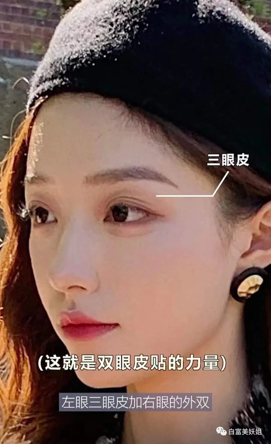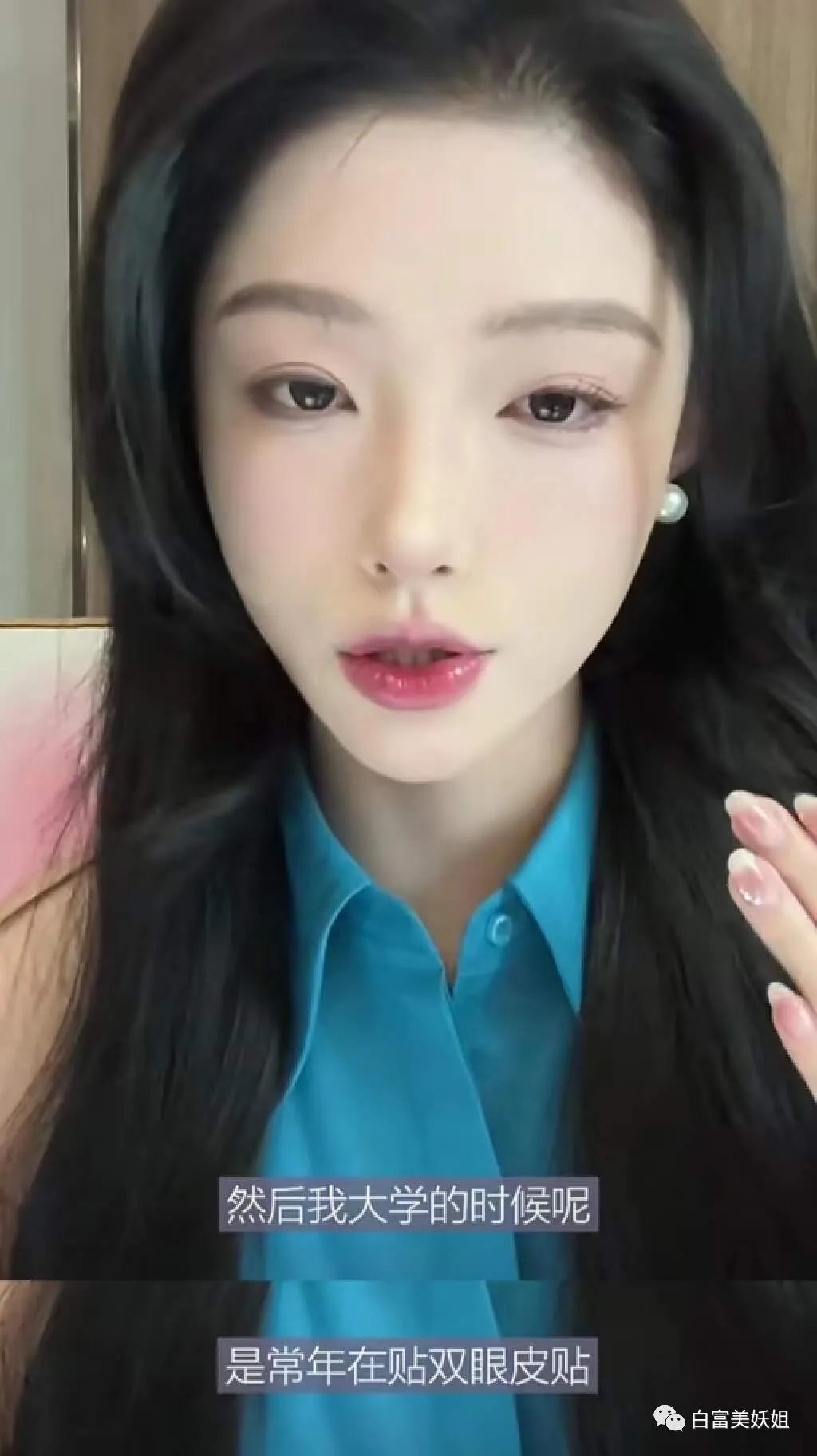 潘白雪说她其实是一个内双,大学时每天都贴双眼皮贴,把眼睛贴出了一个三眼皮。