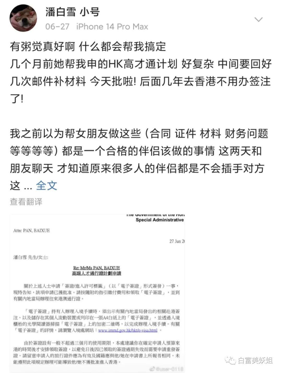 网红潘白雪成功申请到了香港高才通计划,她这是要定居香港了?