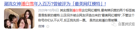 等一下,先不要喷妖姐,她“最美网红这个称号”可不是妖姐封的啊,上网一搜,都是说潘白雪好看的。