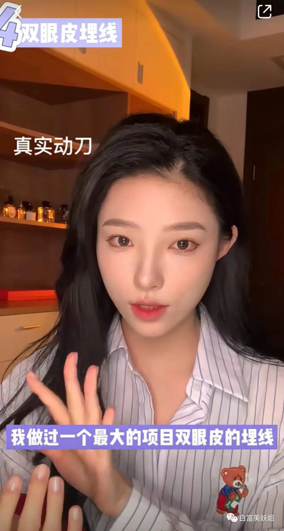 日常护肤类的就不用多说了,做网红的总是离不开这些,手术类的医美中,她自曝曾做过双眼皮。