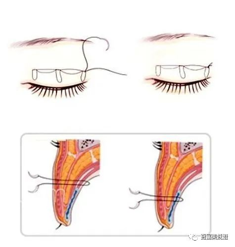 埋线式双眼皮是通过在眼睑中间埋入不可吸收的线,使得眼睑板和皮肤发生黏连,形成双眼皮。