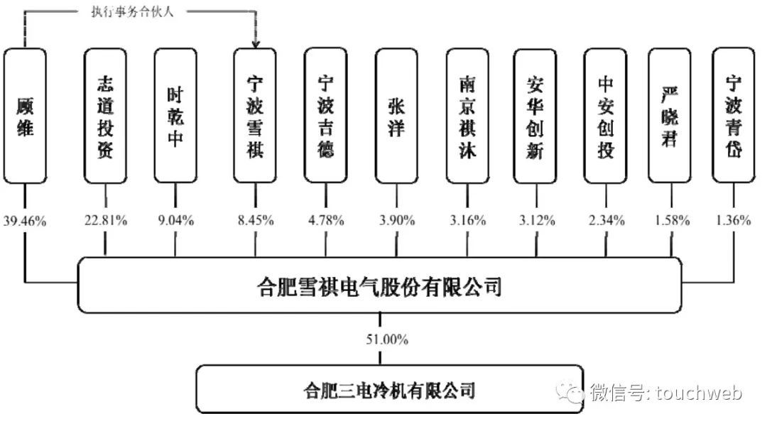 IPO前,顾维直接持有公司4047万股股份,占公司股份总数的39.46%,通过宁波雪祺间接持有雪祺电气股份比例为0.08%,合计持有雪祺电气股份比例为 39.54%。顾维为宁波雪祺普通合伙人及执行事务合伙人,通过宁波雪祺间接控制公司8.45%股份,其直接及间接控制合计47.91%股份。
