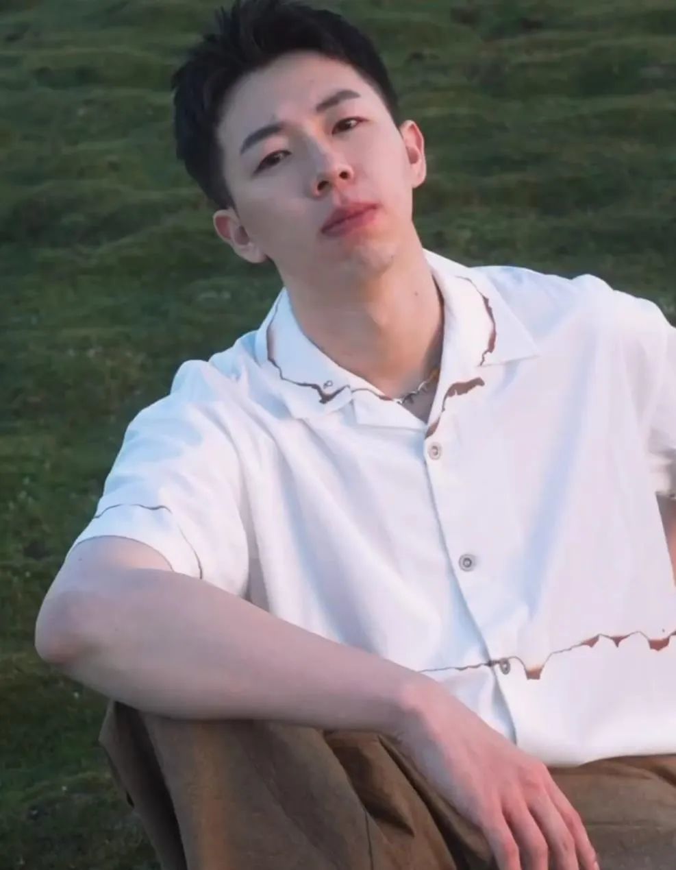 时装打扮的话,长发的他看起来会有点老气,远不如短发清爽。
