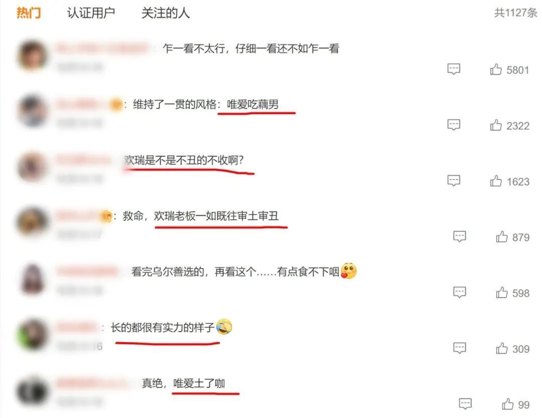 作为业内的大公司,欢瑞一口气官宣了8位男新人是足够引起讨论的,大家看完照片之后也都发表了自己的看法,没想到评论都是一边倒吐槽颜值的,以至于官博不得不开启了评论精选,一开始甚至连一个好的评论都选不出来。
