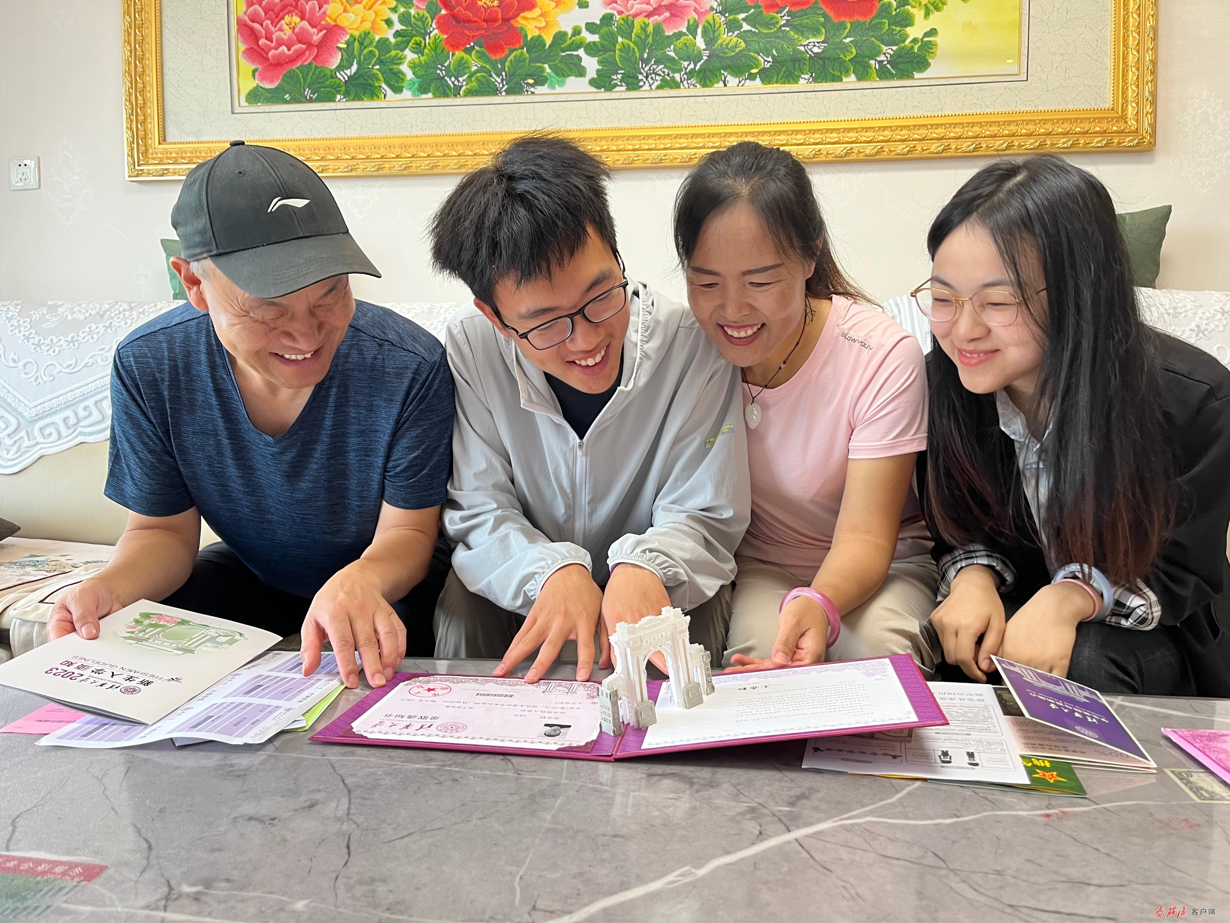 回到家中,苏文钥一家迫不及待、满怀期待、满心欢喜地拆解打开录取通知书,并细致地浏览全部内容。