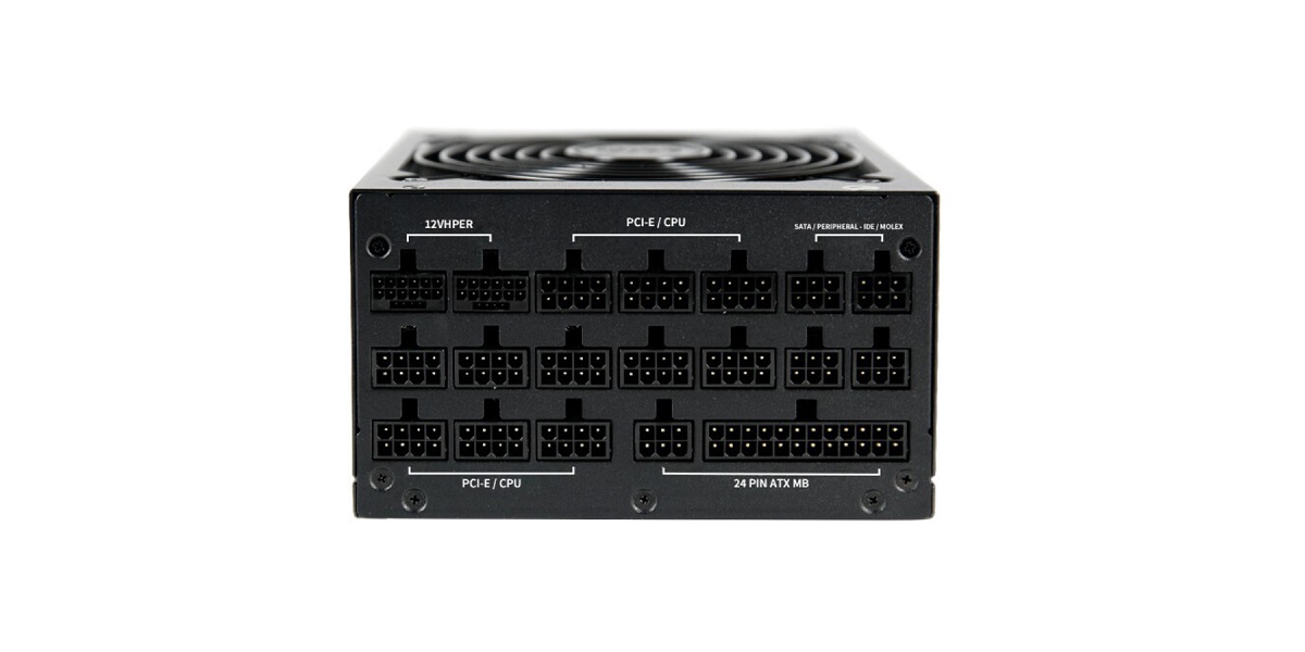 该款电源为全模组设计,这也是当前高端电源的标准配置了,可以根据用户需求安装线缆,减少不必要的线缆避免杂乱、增加气流并提高整体热性能。其配有一个24Pin的主板供电接口、四个8Pin的CPU供电接口、两个16Pin的12VHPWR供电接口、七个6+2Pin的PCIe供电接口、十二个SATA供电接口、三个4Pin的Molex供电接口、以及一个FDD供电接口,不但可以满足高端用户的需求,还能为双CPU的工作站主板提供良好的支持。