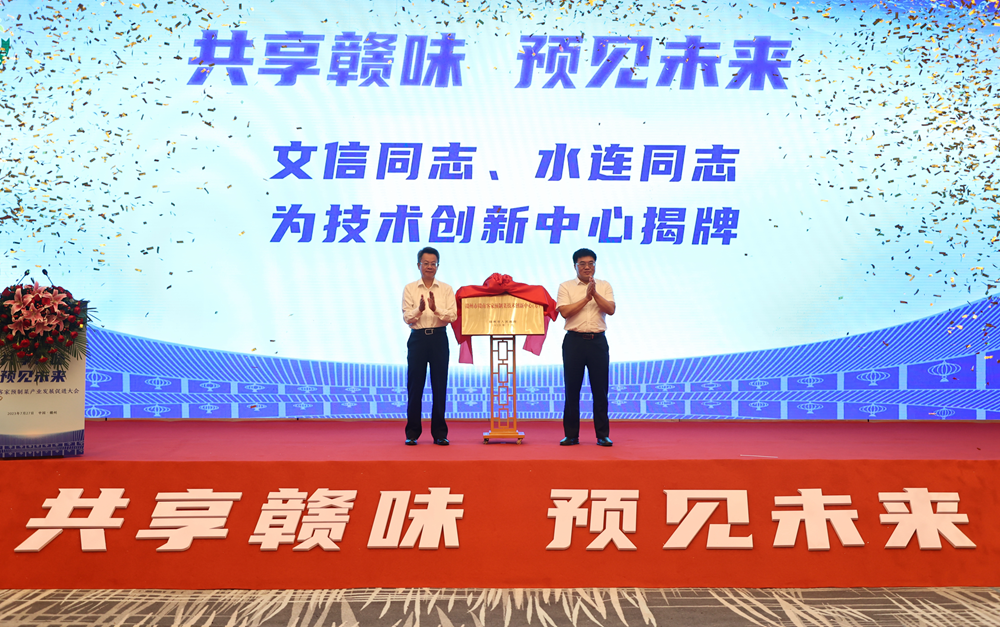 江西省农业农村厅党组成员、副厅长李文信,赣州市委常委、赣州经开区党工委书记陈水连出席并共同为赣州市赣南客家预制菜技术创新中心揭牌。市委常委、市政府副市长窦良坦主持。市政府副市长罗瑞华宣读了关于成立赣州市赣南客家预制菜技术创新中心的批复。赣州经开区党工委副书记、管委会主任梁丁盛致辞。