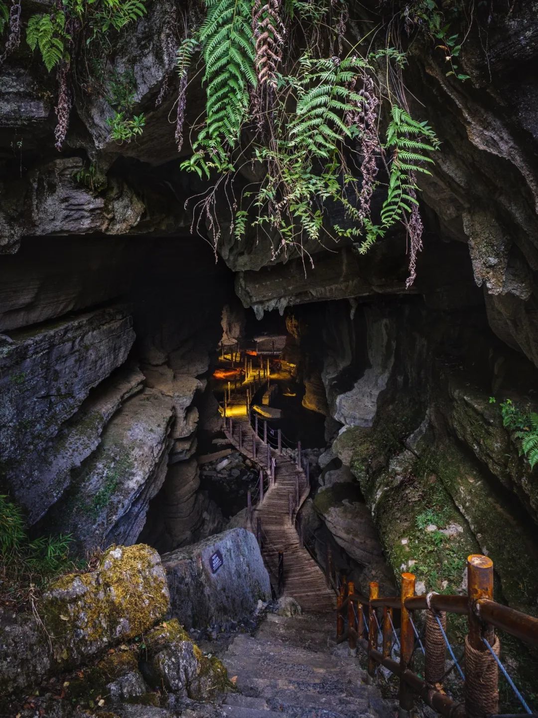 从山脚出发,5千万年前成型的云龙地缝,横亘在恩施大峡谷的山脚,地缝中深潭、溶洞遍布,岸壁陡直,素有“十里百丈绝壁”的美名,据说左右两边形成于不同的年代,放眼全球都很罕见。