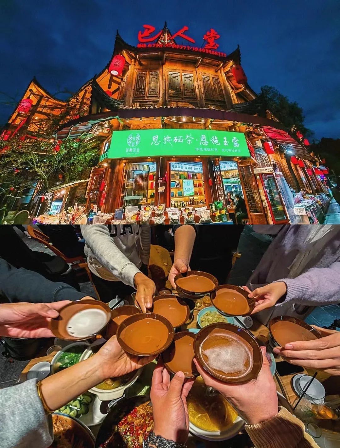 如果想体验土家族文化,不如选在巴人堂,土家族女儿们身着艳丽,载歌载舞,表达友好与亲近的摔碗酒一摔,气氛瞬间达到高潮,据说这摔碗酒是古时土家族儿女们上战场时的壮行酒,饮下这么一碗酒,再来一口酸酸辣辣的干锅酸汤,酣畅淋漓。