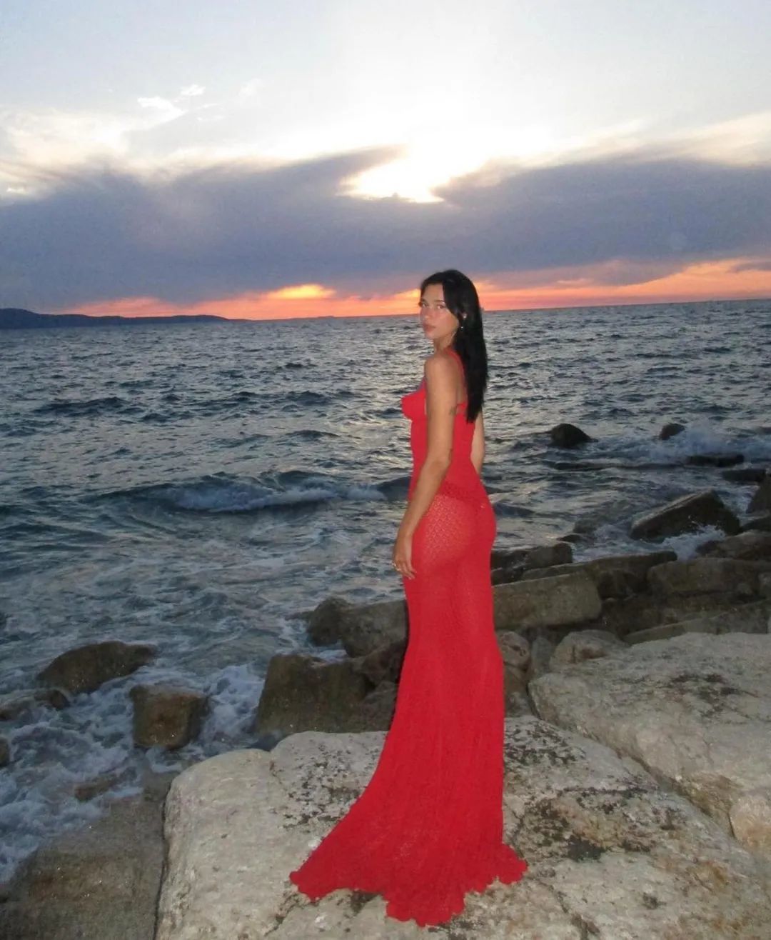 最近她在科索沃度假时换上桃色透明钩针美人鱼礼服,在海边摆姿势拍照,以时尚方式向电影角色美人鱼芭比 Mermaid Barbie Doll 致敬。