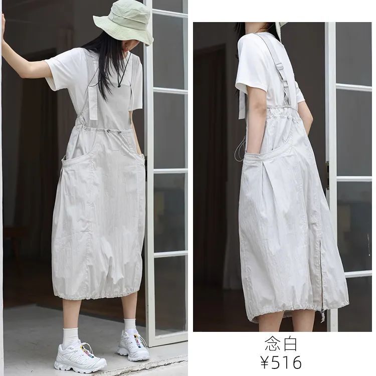 背带裙还附带一个减龄效果,背心×吊带也是夏天很流行的叠穿法哦!