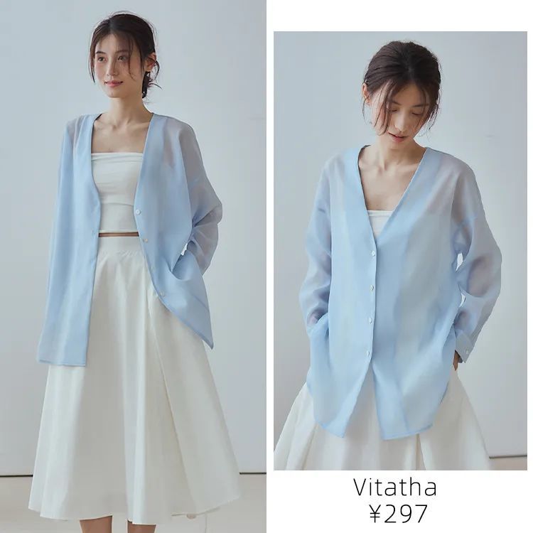 深V领会更多些气质女人味,水色的薄透面料太清新了。