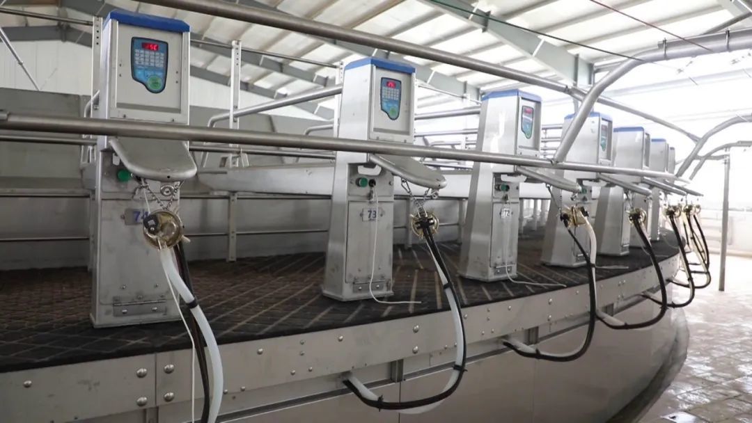 “在机械化越来越普及的今天,转盘式挤奶机己成为大型牧场的标配。我们的转盘式挤奶机是目前最先进的挤奶系统之一,拥有高科技、高效率、高舒适度等特点。”