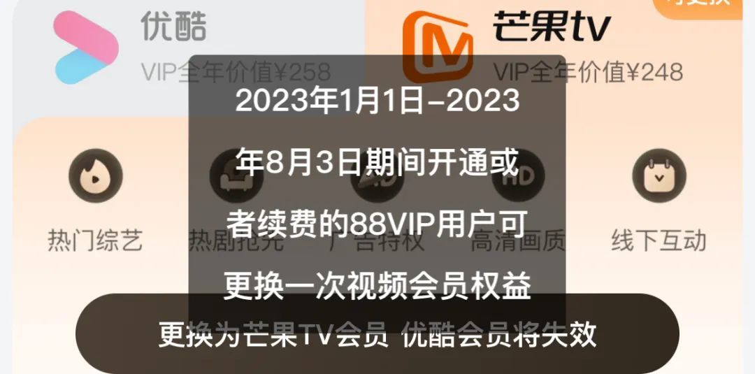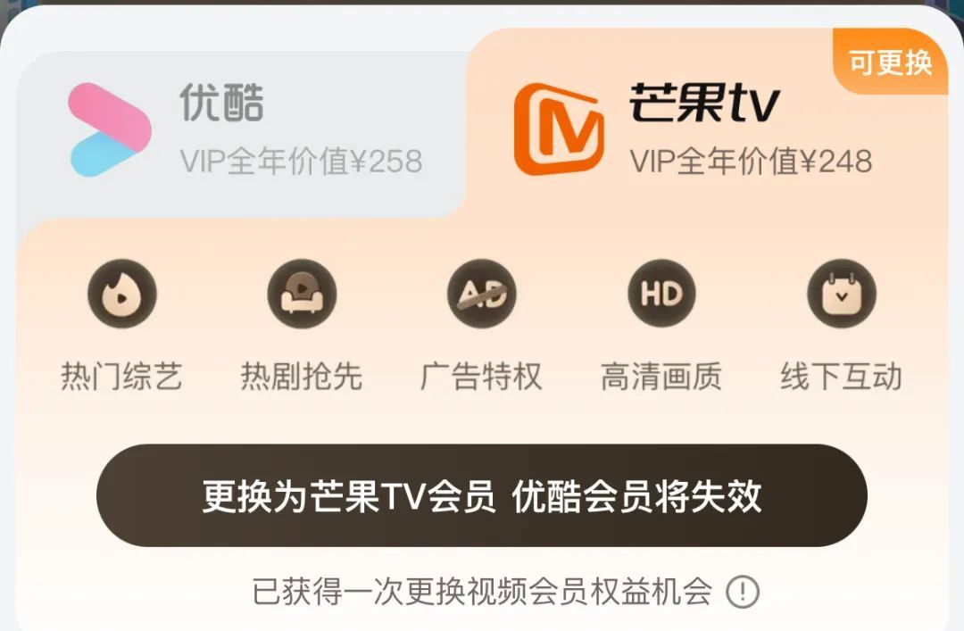 也就是优酷、芒果二选一,不能左右横跳随意切换。