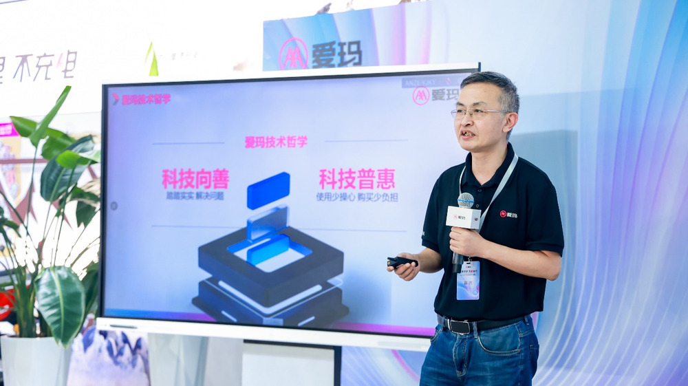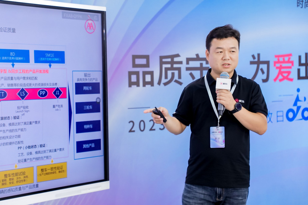 图:爱玛国内事业部研发总监赵光金介绍爱玛技术研发