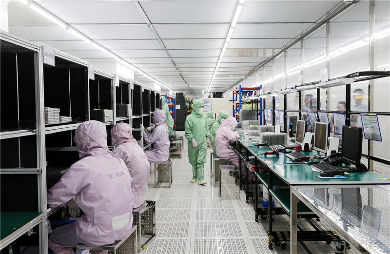 近日,在上饶立景创新光学产业园OLED大屏幕显示屏数字化控制中心,工人正在管理智能生产线。该产业园总投资63亿元,主要生产手机及笔记本电脑摄像头模组、OLED大屏幕显示屏和智能无线打印机等智能终端产品。