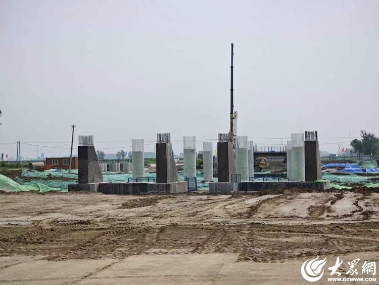 在位于陵城区的高青至武城高速公路商河至平原段项目大宗旱河大桥的施工现场,塔吊高耸,挖掘机、压路机来回穿梭,十余名施工人员正在热火朝天地忙碌着。