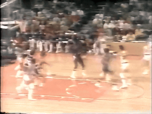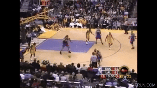 张伯伦和天勾那时代,就这么玩策应了。特克斯·温特老爷子三角进攻的灵感,就来自张伯伦和天勾——后来在公牛,运用到了乔丹、鲨鱼、科比和加索尔身上。