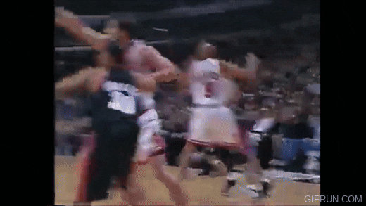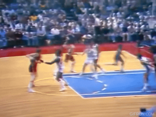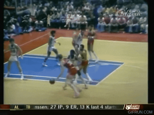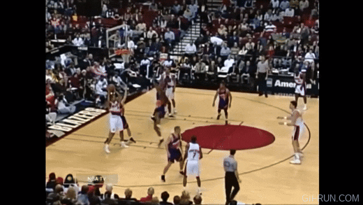比如,姚明的偶像,传奇的世界屋脊,老萨博尼斯——看他给拉希德们喂篮下多写意。