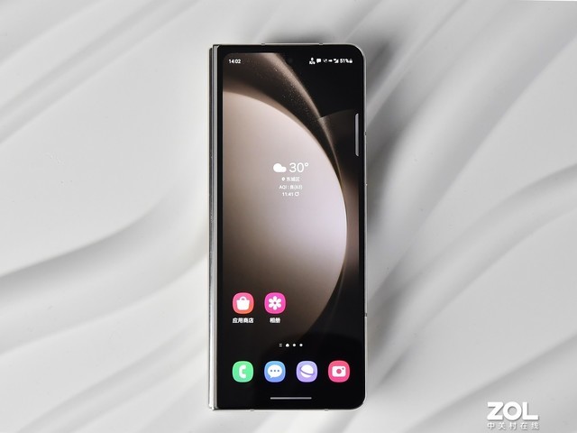 整体设计上,Galaxy ZFold5虽边角圆润但整体外形仍以方正为主,气场非常强劲;当屏幕展开后机身铰链与边框平行十分规整。在外观上除了坚守秩序美学之外更是融入了专属自己的独特美学基因,在折叠屏手机中属于独一份的存在。