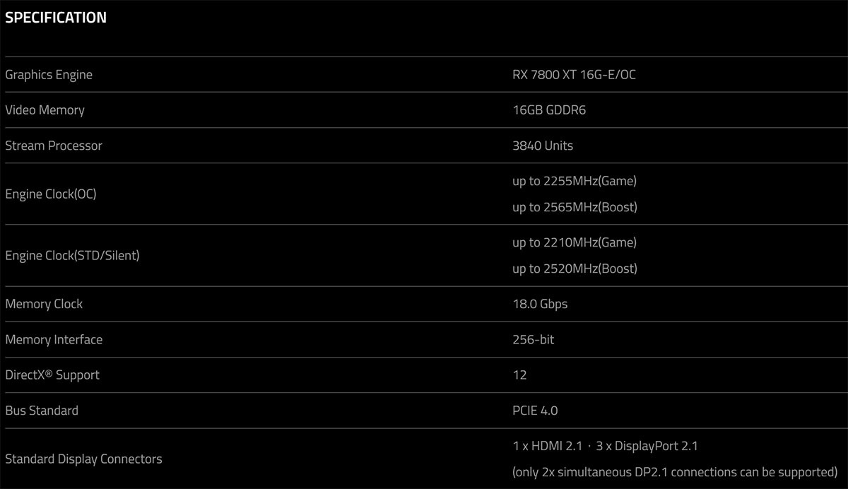 这款全新的RX 7800 XT采用RDNA 3架构的Navi 32 GPU,而稍早前发布的RX 7900 GRE则采用Navi 31 XL GPU,RX 7800 XT拥有60组CU单元共3840个流处理器,比RX 6800 XT的4608个要少,和RX 6800相同,RX 7800 XT Red Devil的游戏频率是2255MHz,Boost频率是2565MHz,而产品页面上也公布了AMD的公版频率是2210MHz和2520MHz。