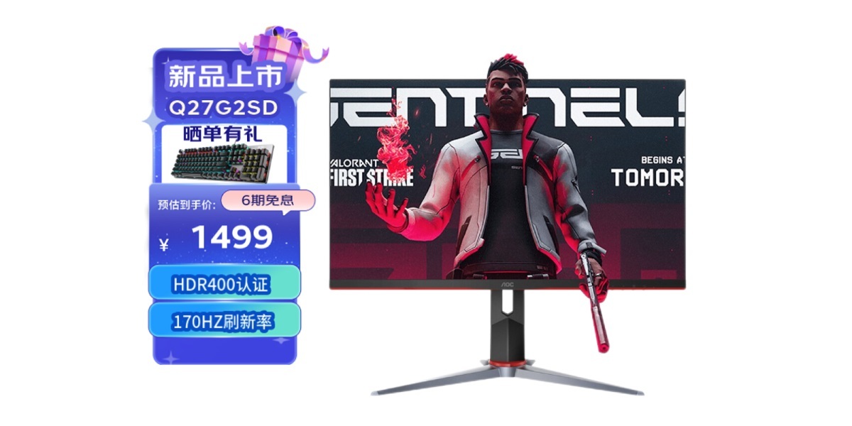 近日,AOC推出了新款Q27G2SD游戏显示器。目前该款新品已登陆电商平台,显示价格为1599元,使用满1500元减100元的优惠券,首发到手价1499元,另外还支持白条免息6期分期,以及有晒单送键鼠或者红包的活动。