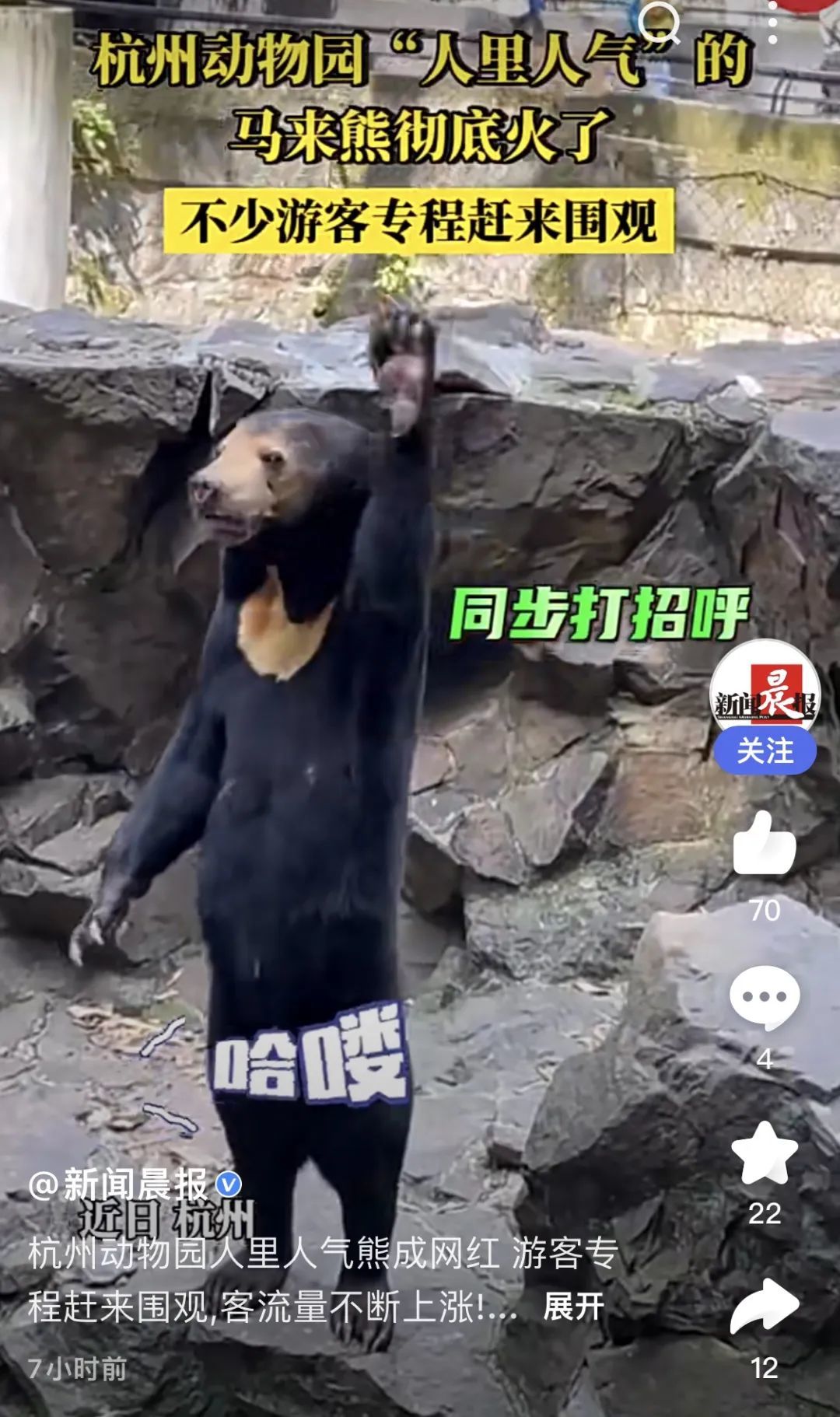 杭州动物园江志副园长说,马来熊站立的视频火了后,杭州动物园的客流量明显增加了,达到2万人以上,比平时增加了三分之一左右。