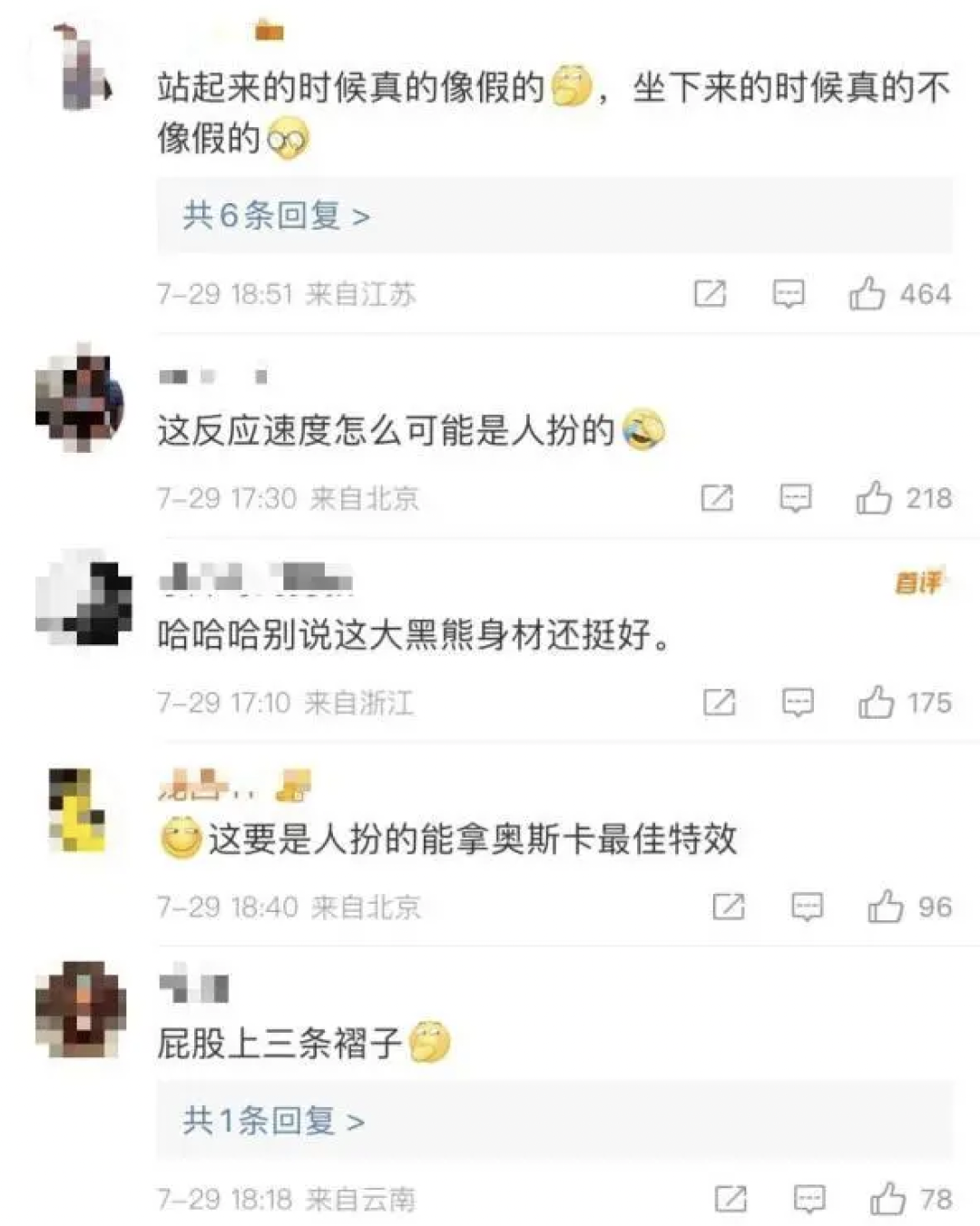 这只被网友称为“人里人气”的熊怎么也想不到,在这个夏天,自己会以这样的方式受到这么多人的关注。网友纷纷在视频下留言评论,有人说:“下半身的褶皱确实有点像外套。”也有人说:“这怀疑……能再离谱一点吗?怎么可能是人扮的。”