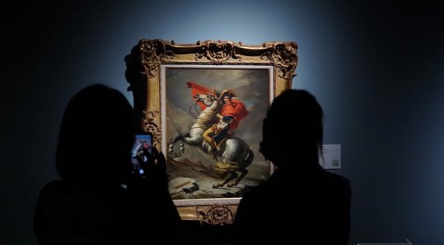 观众在欣赏展品《拿破仑越过圣贝尔纳山》。