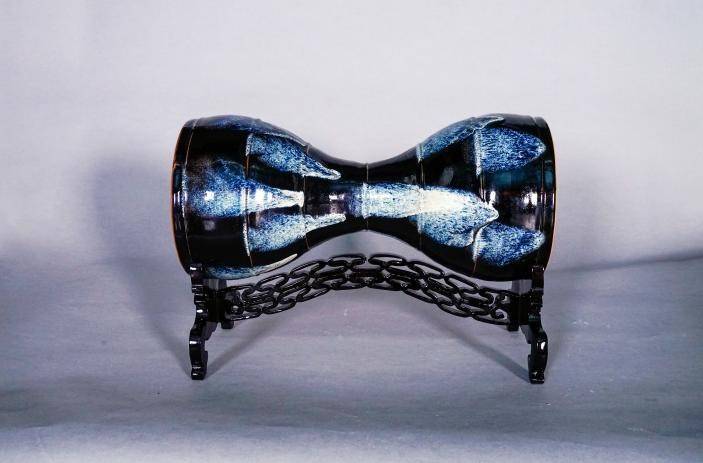由小渐大的《鲁山花瓷腰鼓》,“一鼓作气”,从鲁山瓷乡段店到洛阳再到长安,从唐玄宗的手边、杨贵妃腰肢,来到故宫博物院。技艺潜行600载,最终在袁留福的指尖上浴火重生。匠人也是诗人,匠心也是画心。袁留福,一个庄稼地里走出来的鲁山花瓷传承人,中国陶瓷艺术大师,高级工艺美术师,中原大工匠……他胸中千山迢递、万川奔涌的激情与才华,他历尽艰辛而不悔的家国痴情,物化为这无以言说的花瓷造物,沉稳厚朴又风华流丽,是人类智慧的凝固,是自然造化的天成。