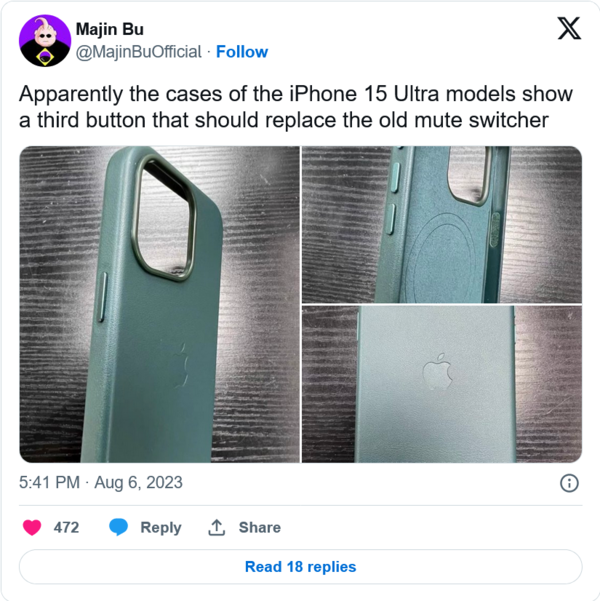 不过曝光这张图的网友后来澄清这个手机壳“是复制品,不是官方产品”,虽然爆料者澄清了这不是来自苹果官方的产品,也有可能不一定是真正的iPhone 15系列手机壳,不过有吃瓜网友发现此博主在社交平台上曝光的内容可信度非常高,也就是说这次爆料的手机壳或许还真的是iPhone 15系列的手机壳。