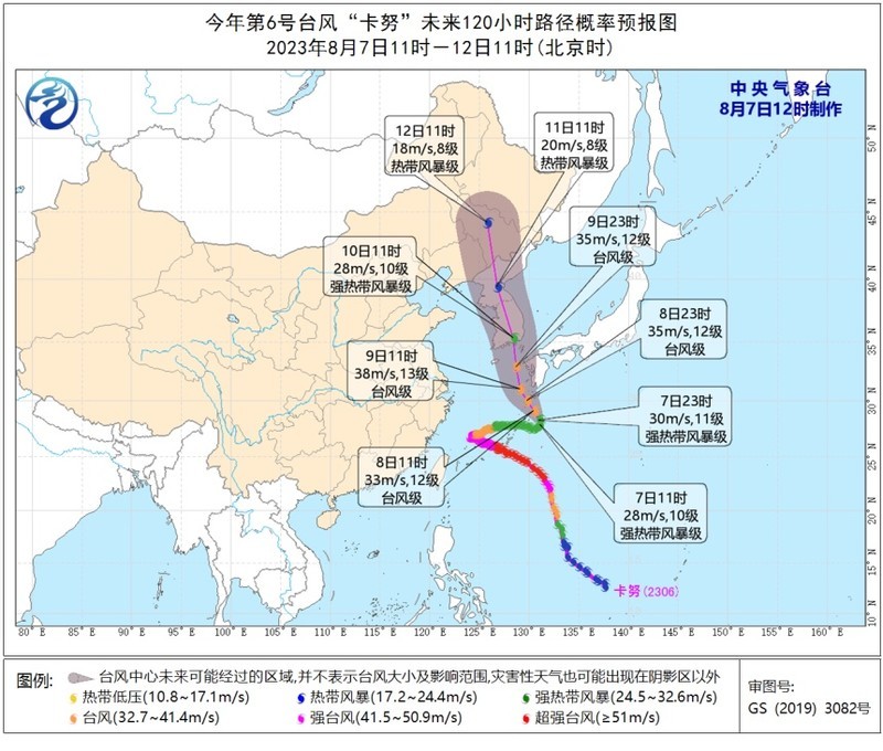 在北京时间8月11日14时左右,台风努卡将从我国吉林与朝鲜的边界进入我国,并一路北上化身温带气旋在黑龙江省内停留消散,这与我国中央气象台预计的卡努路径几乎一致。
