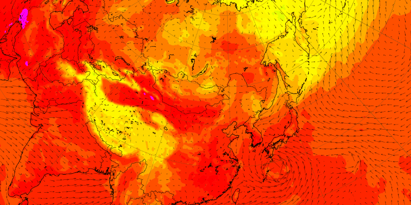 其中与我们生活息息相关的是“海平面2米温度和10米风量”。图表上的色彩部分代表地面2米处的空气温度,这个温度是通过一种叫做"非线性插值"的技术计算出来的,基于模型预测的地面和10米高度的温度。颜色越深,温度越高。你可以点击图表右下角的图标来查看颜色对应的温度。