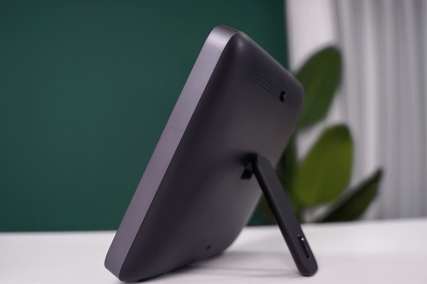 屏幕顶部还设有摄像头,支持105°超广角取景,可用于视频通话,远程看家等。值得一提的是,机身后部有摄像头开启关闭的滑块,可以物理遮挡摄像头,保证用户的隐私。