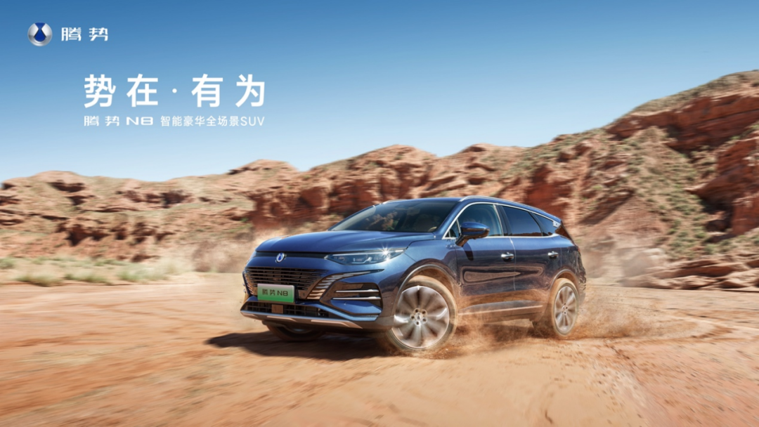 所以,我们能够看到的是腾势N8走的是一整套的,最热门、也最为人们熟知的多功能运动车,带越野、带户外场景叙事的流程逻辑,与产品特性。