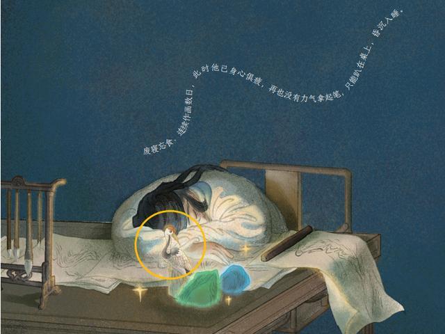 仙鹤还可能是希孟心中的理想,当希孟深夜累得筋疲力尽时,仙鹤发出了隐隐的光芒,引他入仙境,遇到了石青、石绿两位仙人。