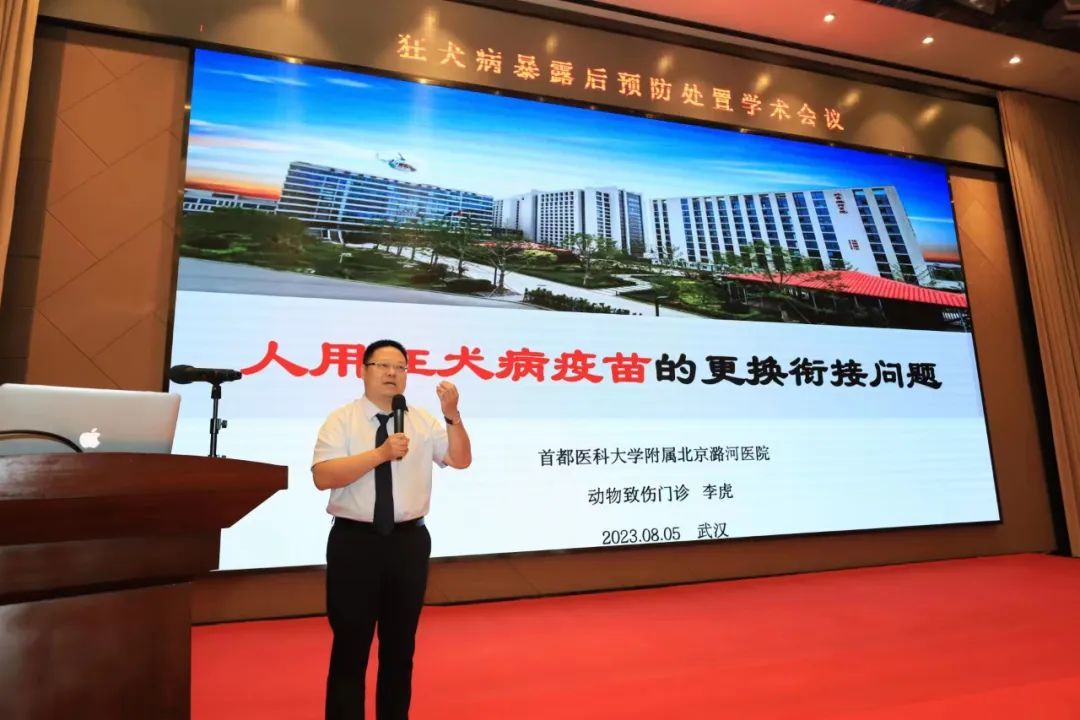 李虎在报告中解答了人用狂犬病疫苗的更换衔接问题。他指出,在接种狂犬病疫苗的过程中出现严重不良反应,经过评估,可以更换不同基质或不同品牌的狂犬病疫苗完成整个程序。另外,寒暑假、节假日去异地,而异地没有同一品牌或者同一程序的狂犬病疫苗,也可以更换其他品牌狂犬病疫苗完成整个程序。