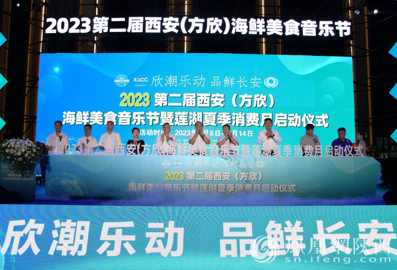 8月8日,由西安市商务局、莲湖区人民政府主办,西安商业联合会、西安方欣集团承办的2023“知味陕西”餐饮消费季西安(方欣)海鲜音乐节暨莲湖夏季消费月启动仪式在方欣海鲜市场南广场举行。
