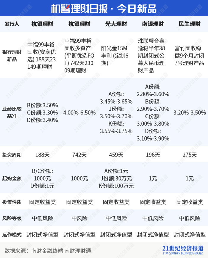 与6月28日《机警理财日报》发布的同维度榜单相比,本期榜单变化较大,除招银理财“招智多资产FOF(平衡型)月开一号”、“招智睿远平衡(500增强)日开1号A”和“招智混合策略FOF(尊享对冲)一号A”外,其余均为新上榜产品。