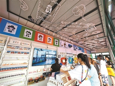 北京奥运文化主题邮局于8月8日开业,主题邮局依托“双奥之城”的奥运文化,发挥邮政自身资源优势,将传统邮政服务与文化创意相结合,开设沉浸式打卡区、文创商品展示区、盖戳章区、定制业务区等多个功能分区。图为昨日,游客在奥运文化主题邮局内选购邮品。