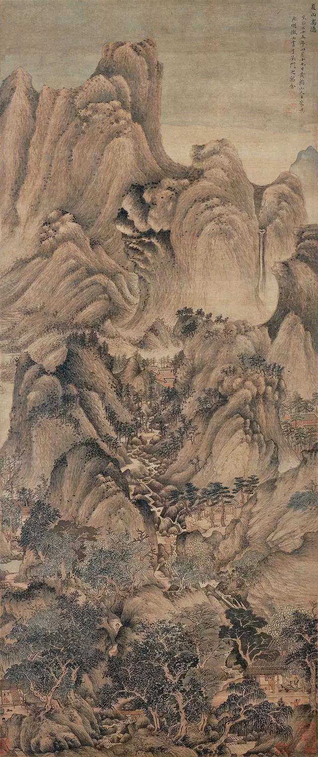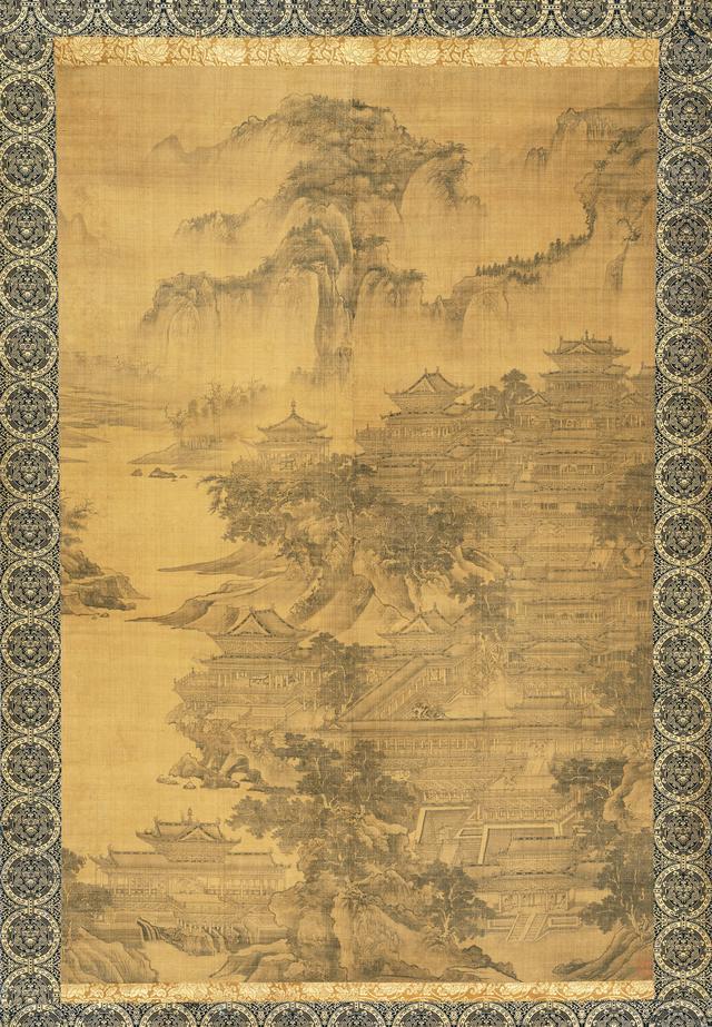 传五代末至北宋初界画家郭忠恕所绘《明皇避暑宫图》(日本大阪市立美术馆藏)画面内容即为骊山华清宫室建筑的景象。虽是皇帝在郊外的避暑宫阙,但殿宇的繁华并不啻于大内,给人以富丽堂皇之感。作品构图略带俯视,布局从图下的宫门向内,亭台楼阁,水榭宫室,长廊庭院,依山势覆压而上。画面右半部分以山峰围拥下的华清宫整体与左半部分宽阔的水面和山谷形成虚实对比,远景则作拔地而起、突兀高耸的峰峦,以凸显避暑宫的雄伟气势。同类题材郭忠恕还画过多幅,《宣和画谱》卷八就记录有《明皇避暑宫图》《避暑宫殿图》和《山阴避暑宫图》三幅。《秋涧先生大全集》中亦有王恽所见郭忠恕《明皇骊山避暑宫图》摹本的记载:“《明皇骊山避暑宫图》,郭恕先笔也。宫观随势作三层覆压,华清居上,方殿四围垂帘,宫人隐见帘隙,类望远而外窥者。中腰楼阁参差,冠山跨壑,半为宫柳蔽亏。其下水榭极峻,内人上下杂沓无数,疑供帐也。波间渔郎舣艇持纲延伫者非一。驾自阁道乘腰舆拥仗将升榭而观渔乐者。”后世清代界画家袁江的《骊山避暑图》(首都博物馆藏)以大青绿山水绘制了唐代帝王贵族前往骊山行宫避暑消夏的情景。