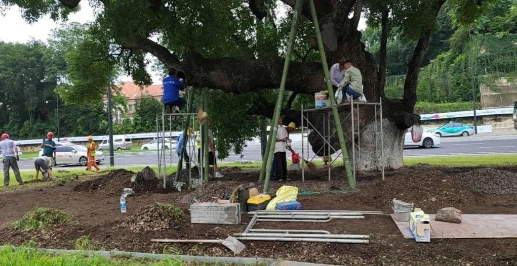2020年8月,两棵古香樟的保护复壮工程正式开始实施。