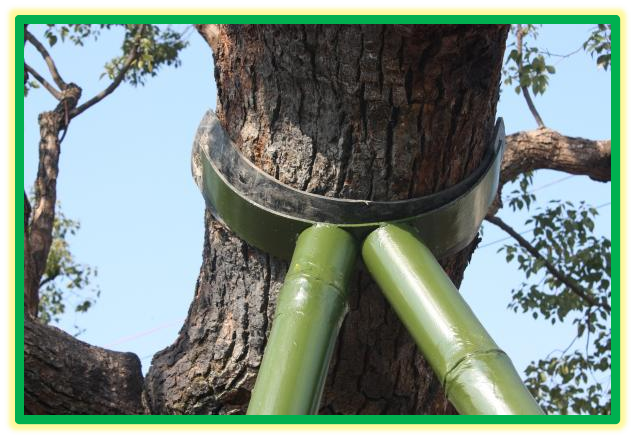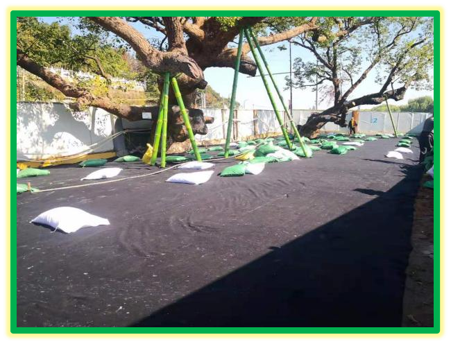 ▲左:树木支撑;右:地面清理