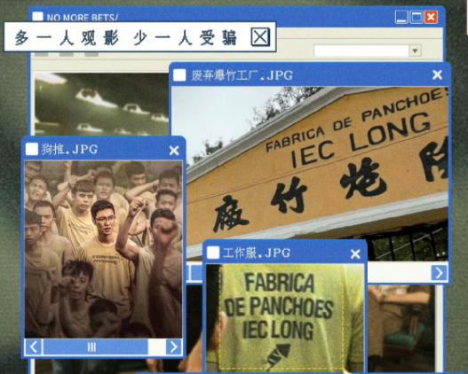 境外诈骗集团中狗推工作服的灵感,源于电影取景时遇到的一座真实存在的废弃爆竹工厂,也呼应着影片中诈骗集团放烟花的情节。